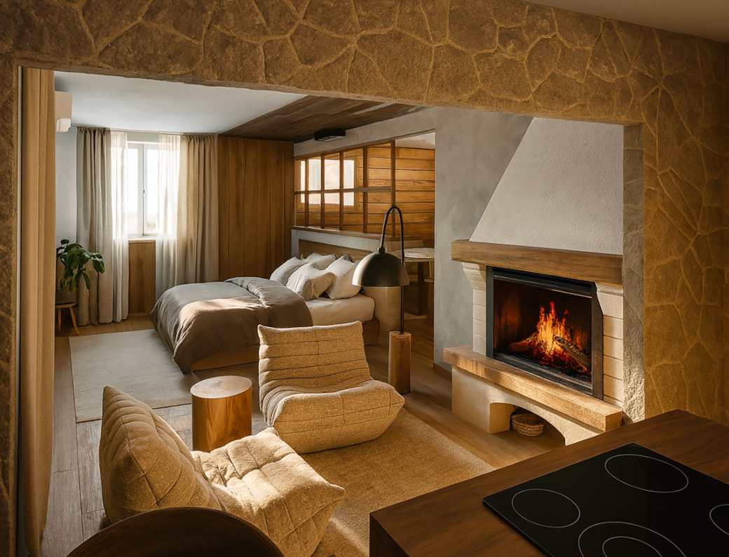 Bellevue est un refuge sensuel, un cocon d’altitude, pensé pour les amoureux qui aiment se retrouver, se réchauffer, se rapprocher… naturellement.